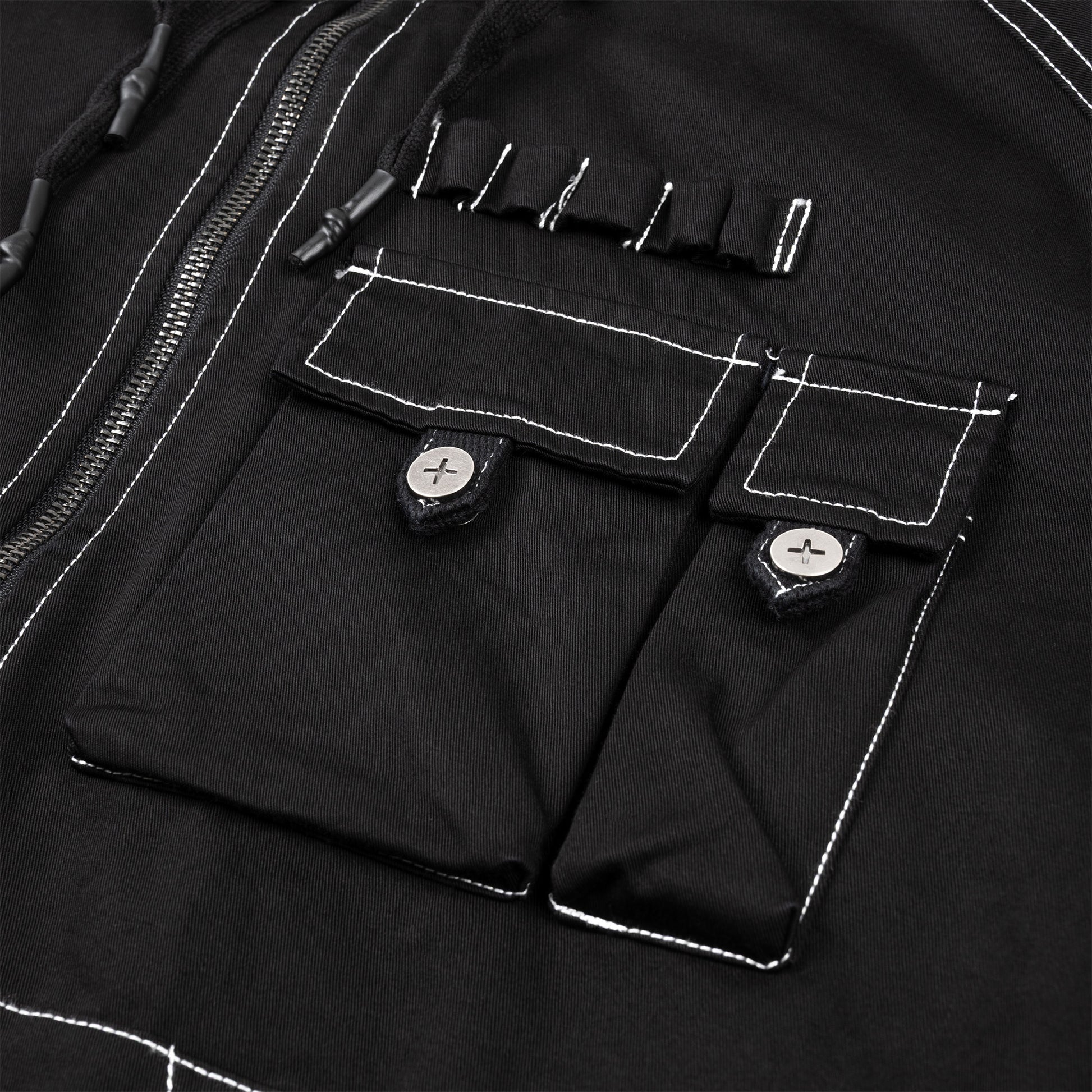 This light, packable, highly versatile windbreaker jacket is especially tailored for all you tech-wear enthusiasts. Features include multiple pockets in various sizes, different fabrics, and an array of adjustable straps to suit your style preference. The jacket has an interior strap that allows it to be worn over the shoulder. Whether you're gearing up for an urban run or taking a leisurely stroll in the park, these wardrobe essentials have you covered.