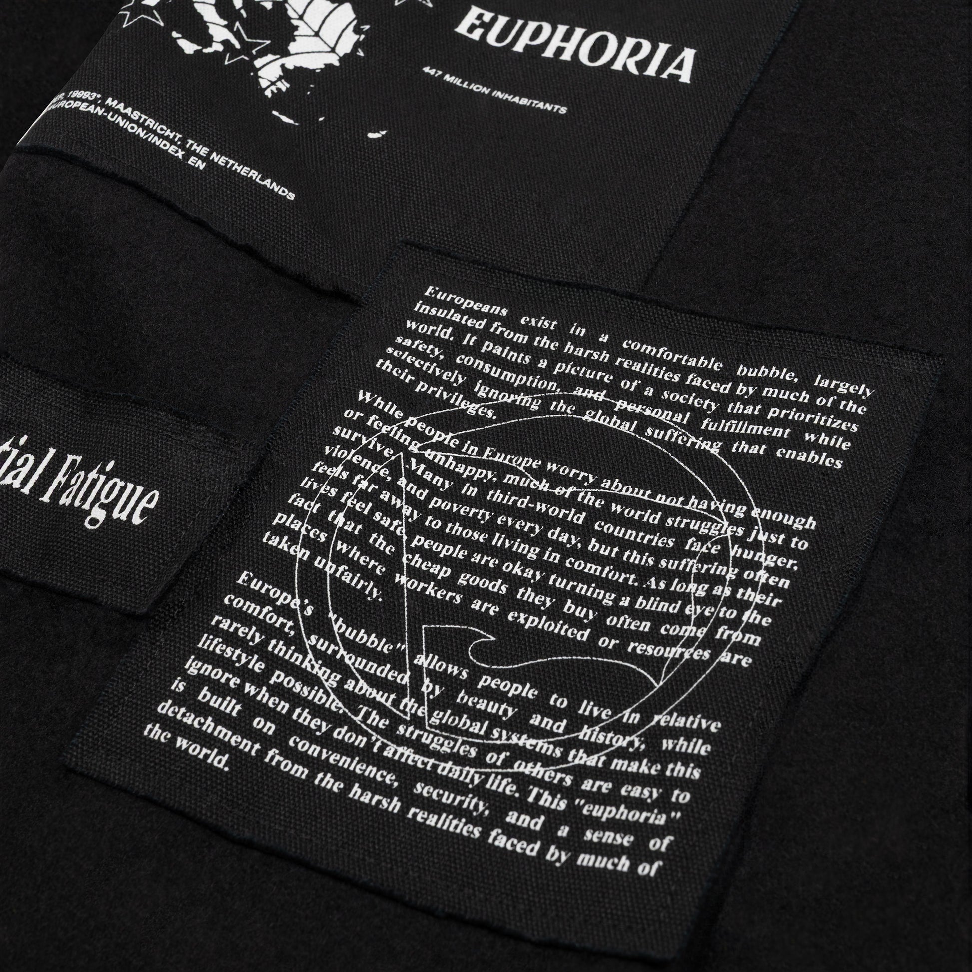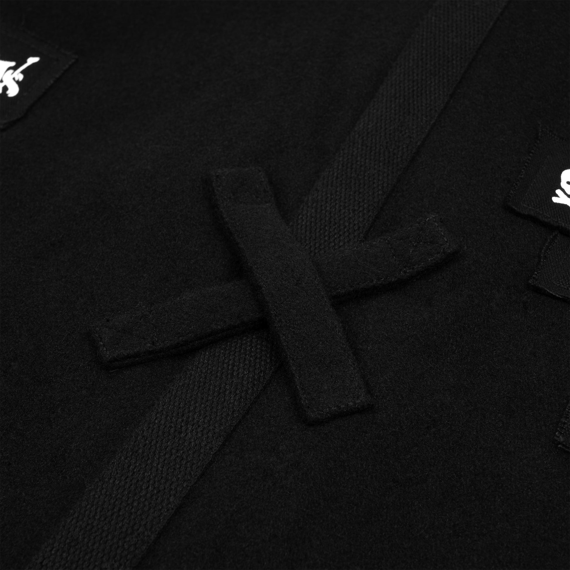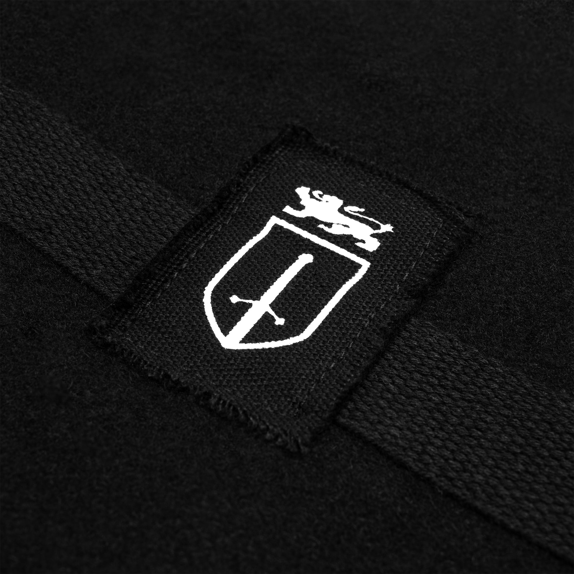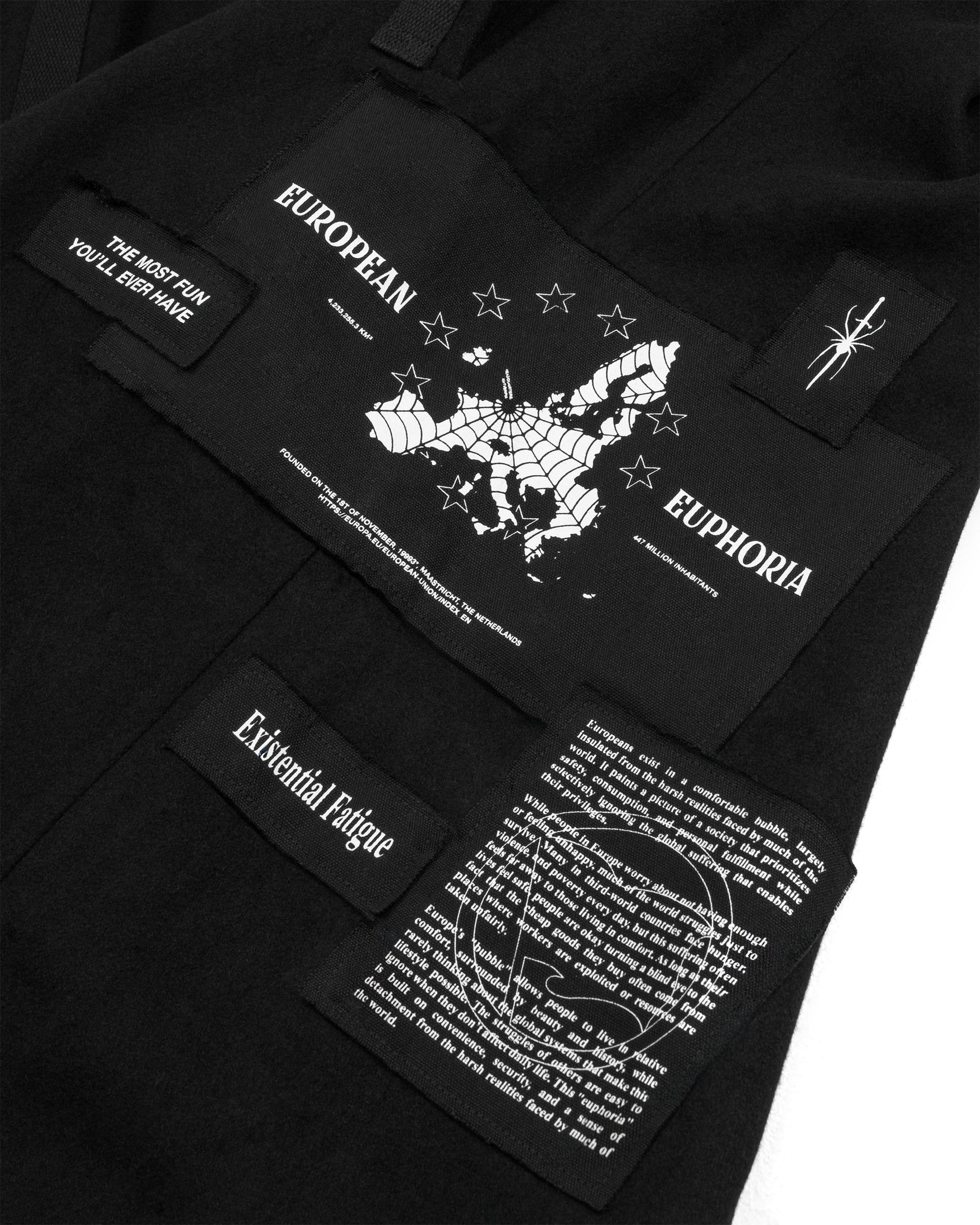 Oversized long coat with the commanding presence of a streetwise captain, covered in 25 screenprinted patches. It has pockets for essentials and details that hint at blue-collar readiness and military precision without taking itself too seriously.