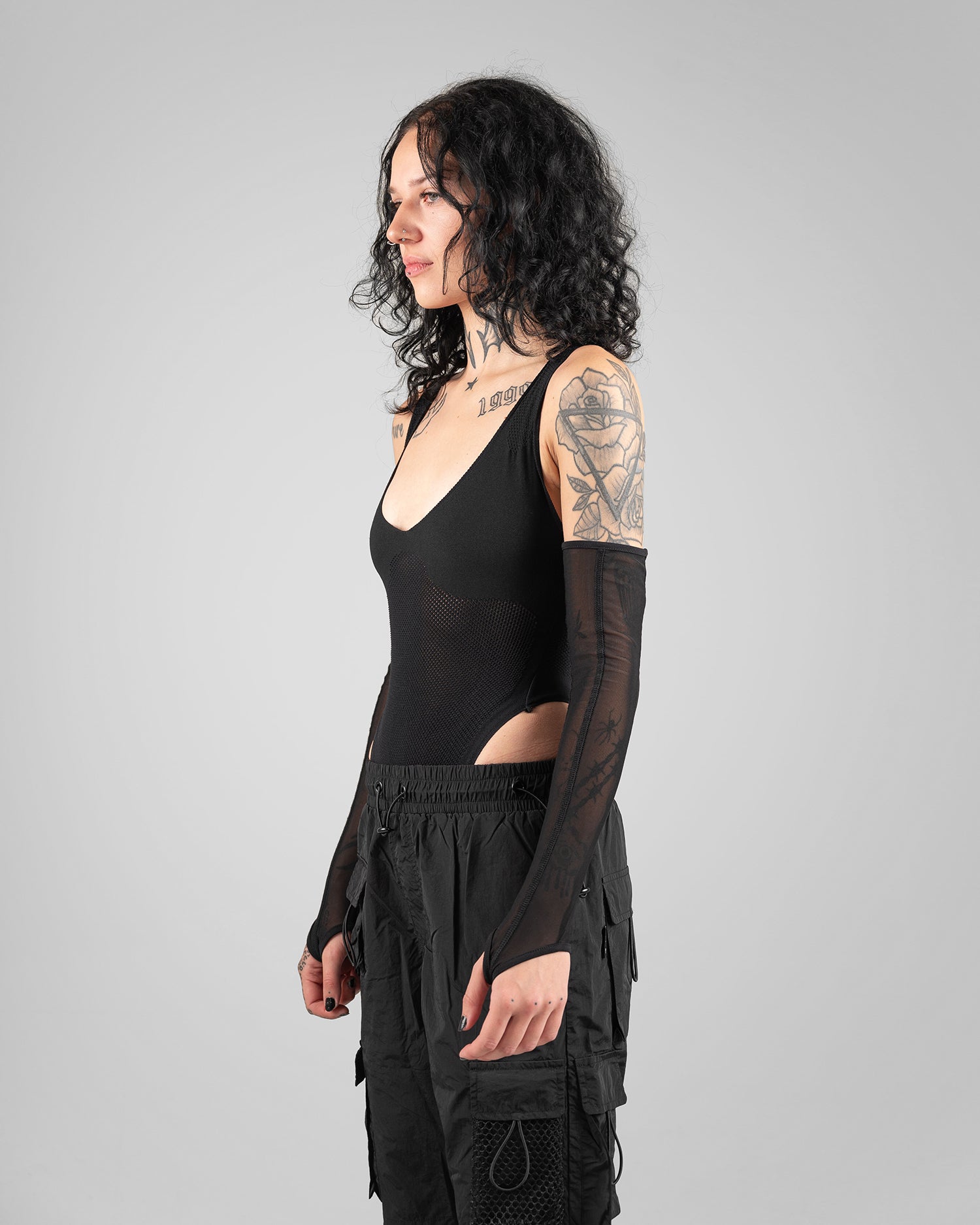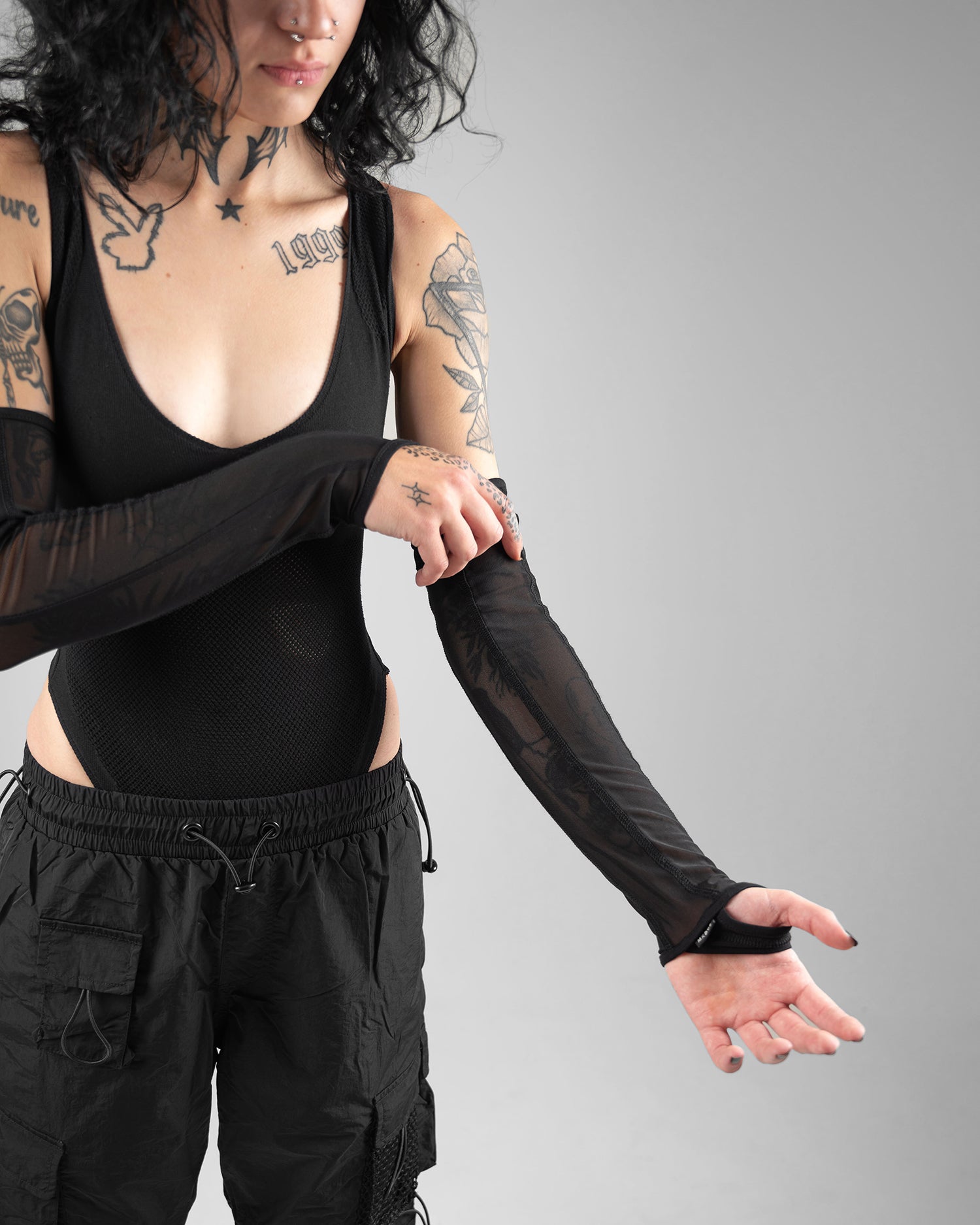 A mesh sleeve that can serve as a versatile base layer or a addition to complement your everyday outfit.
