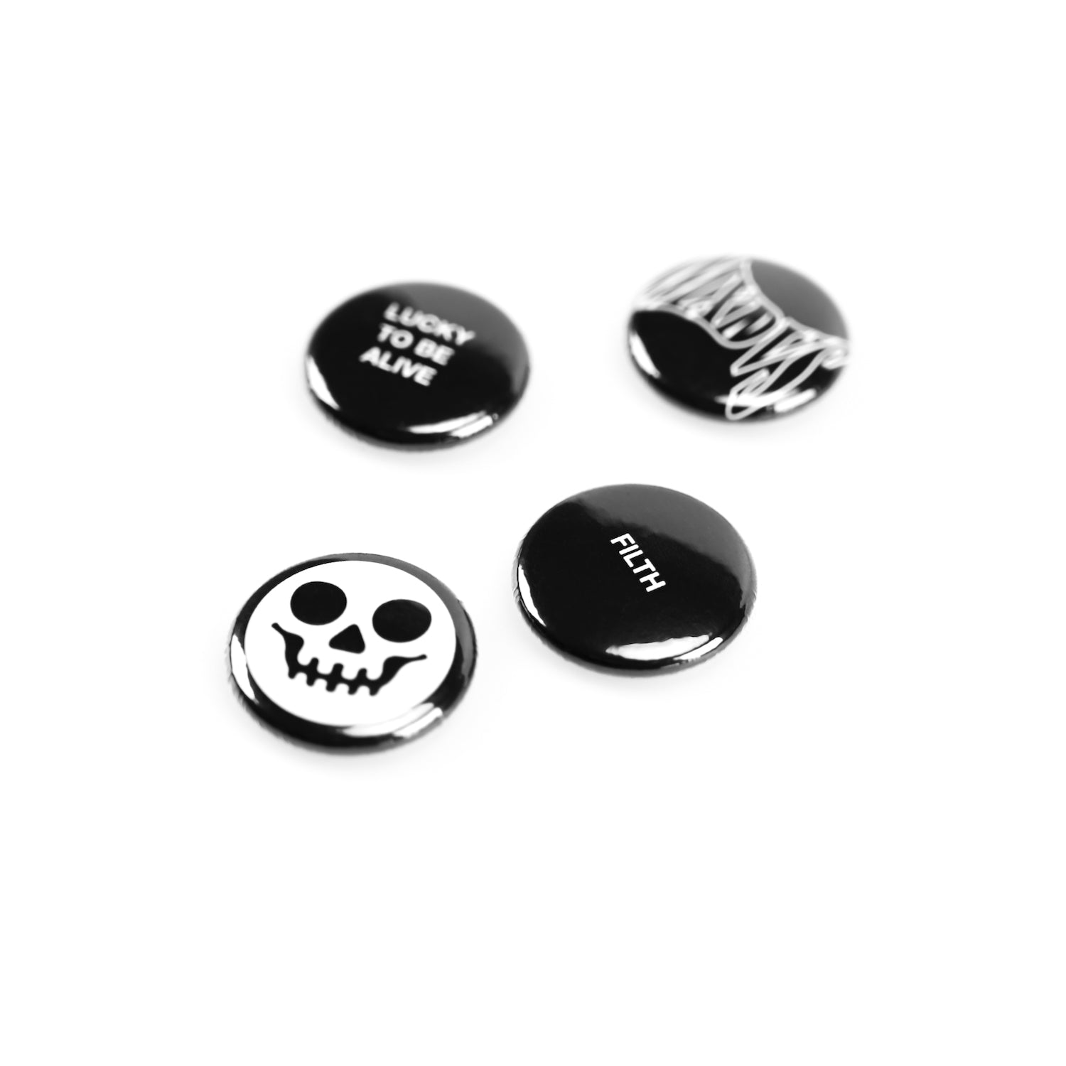 Pack of 4 round button pins, each is 25mm in diameter