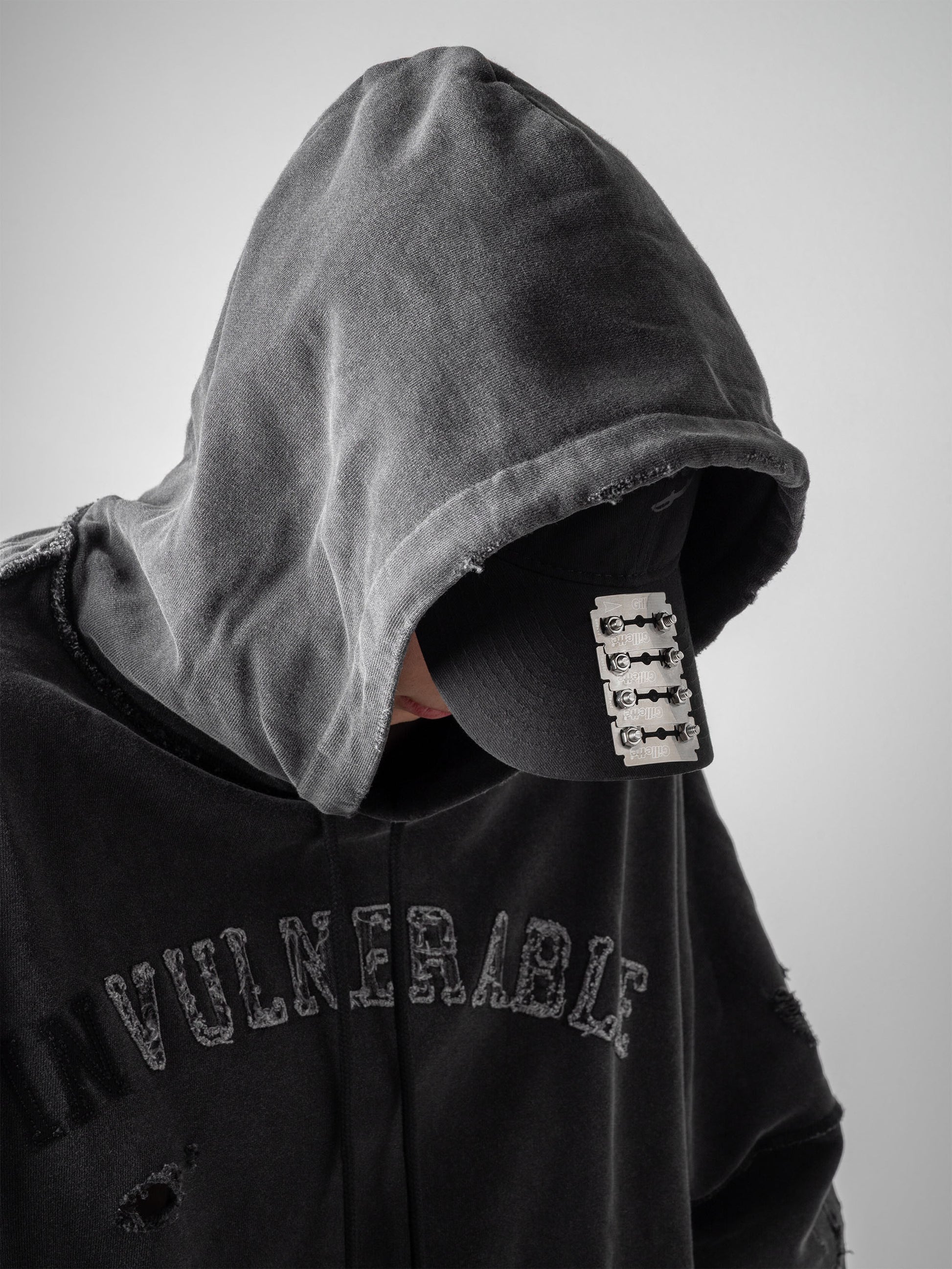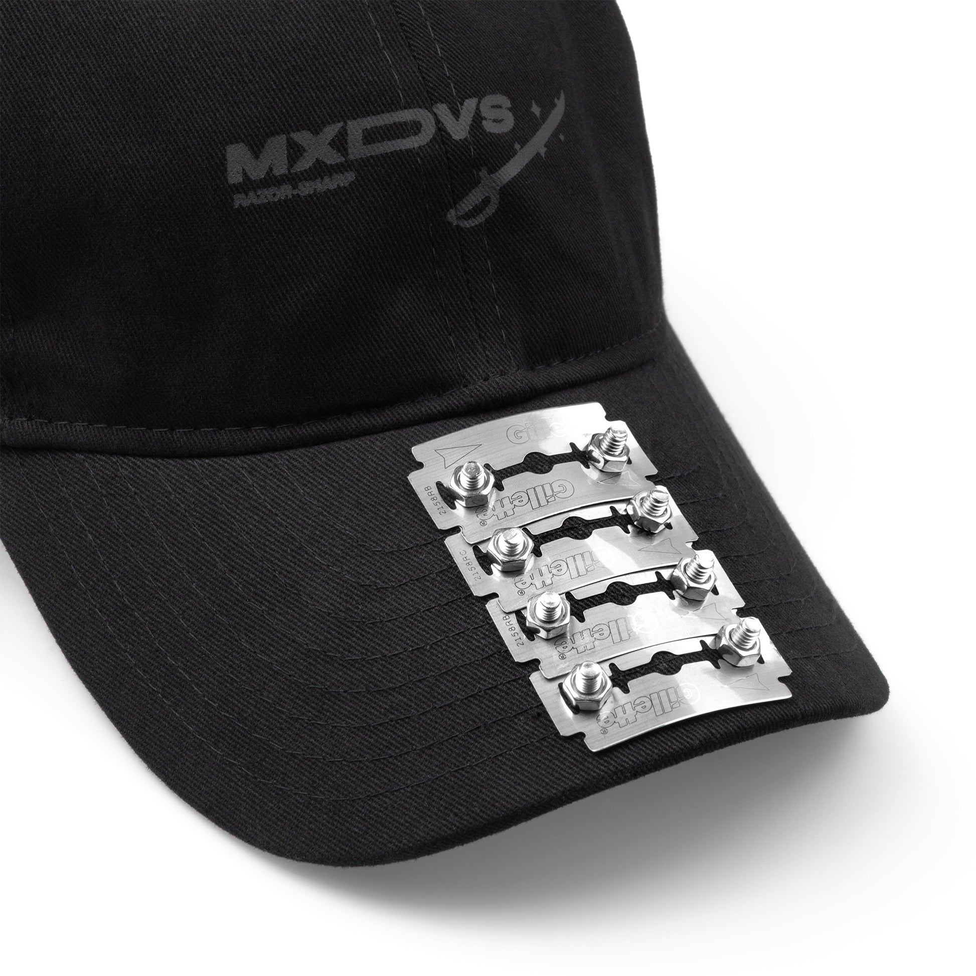 This hat comes with four platinum Gillette razor blades bolted straight through the brim of your hat. Side effects may include envy, cuts, and sudden respect.