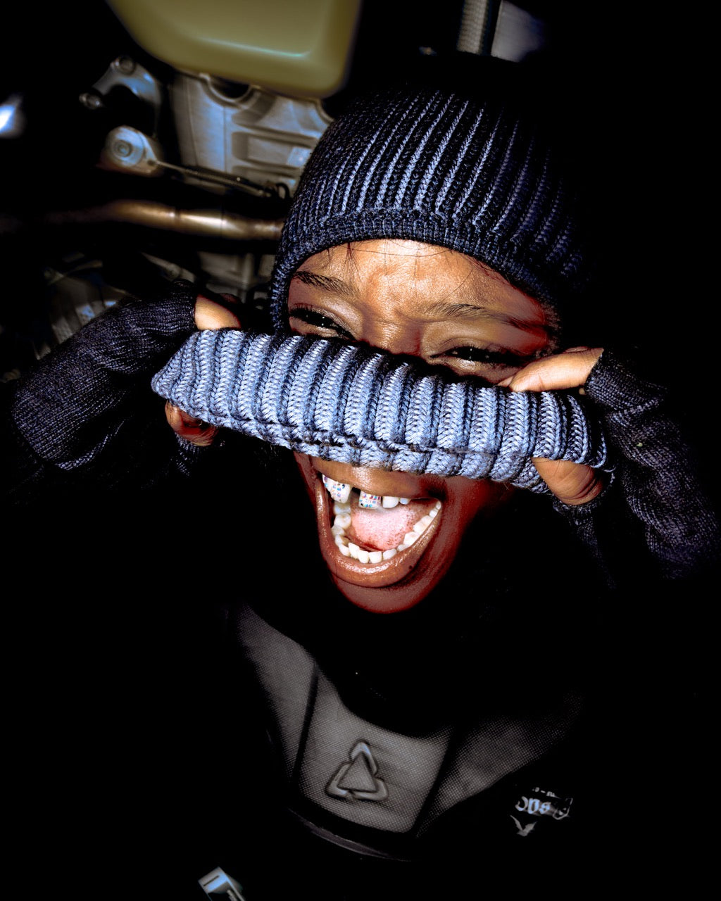 Brass knuckle-inspired fingerless gloves with a stone-washed finish. Here to keep your hands warm while leaving your fingers free for endless doomscrolling.